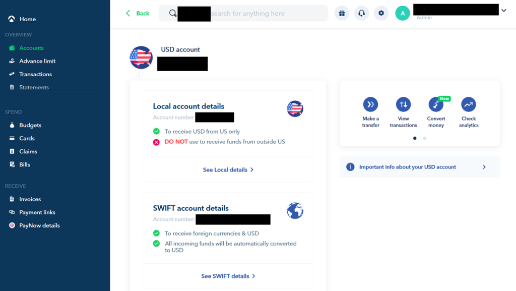 So, if you need to send or receive money in USD, you can do so “natively” with the ACH transfers.