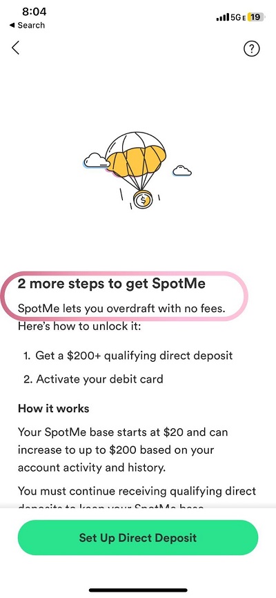 It should be known that the more you bring over to Chime through direct deposit, the more likely they are to increase your SpotMe limit.