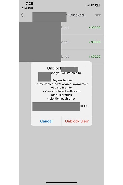 Venmo doesn’t want you making any hasty decisions, so before you unblock someone, they’ll give you a pop-up notification letting you know exactly what will happen if you do.