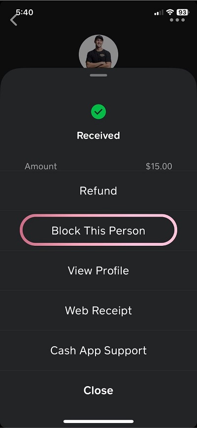- Click the three dots in the upper right hand corner: Clicking on the three dots in the upper right hand corner will bring up a menu with more options, including blocking whoever sent you money.