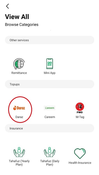 Now, scroll down to the Daraz icon and click it.