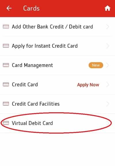 Now, click on Virtual Debit Card at the end of the list.