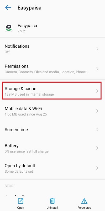 In this step, click on the Clear cache button on your screen. This should clear all your temporarily stored data from the device. If you want to clear any data stored by Easypaisa, you can also do that from here.