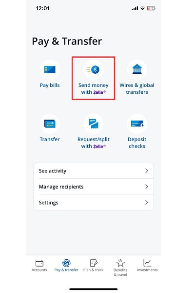 To set up your account with Zelle, open your bank’s mobile app and head to the transfer section.